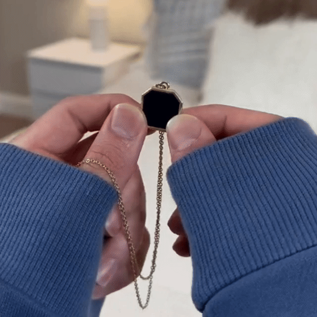 Trage den Anhänger nah an deiner Haut oder erwärme ihn mit einer Wärmequelle (z.B. durch sanfte Handwärme oder eine Lampe). Sobald der Anhänger 30 Grad erreicht, wird das versteckte Foto sichtbar – und du kannst den Moment immer wieder erleben.